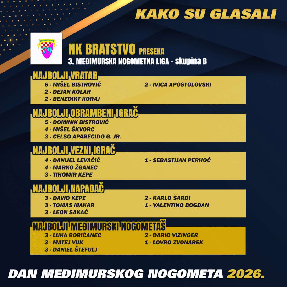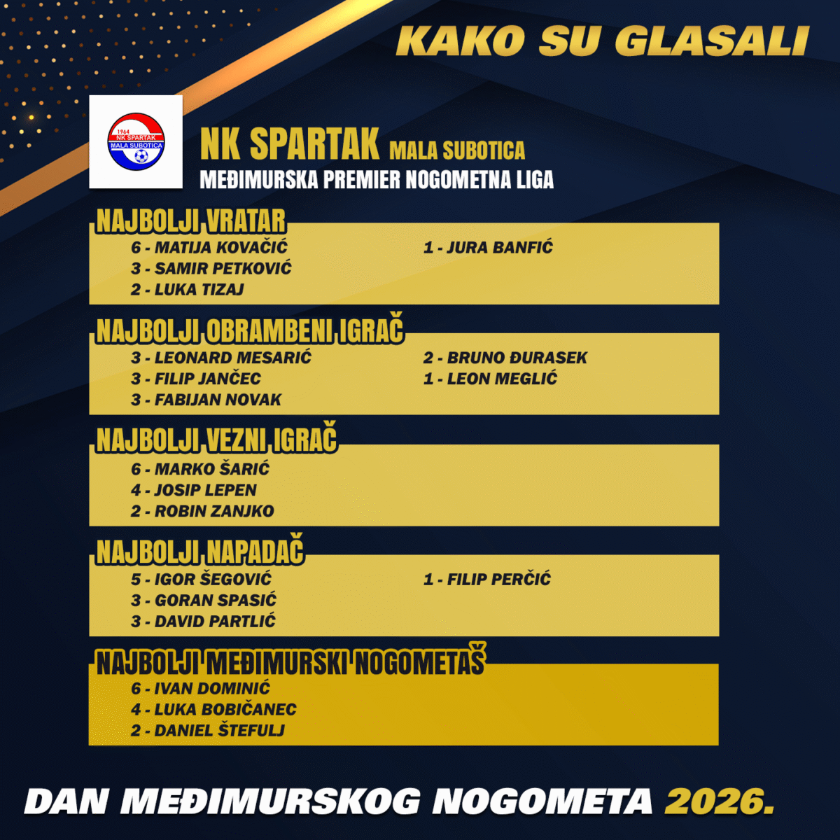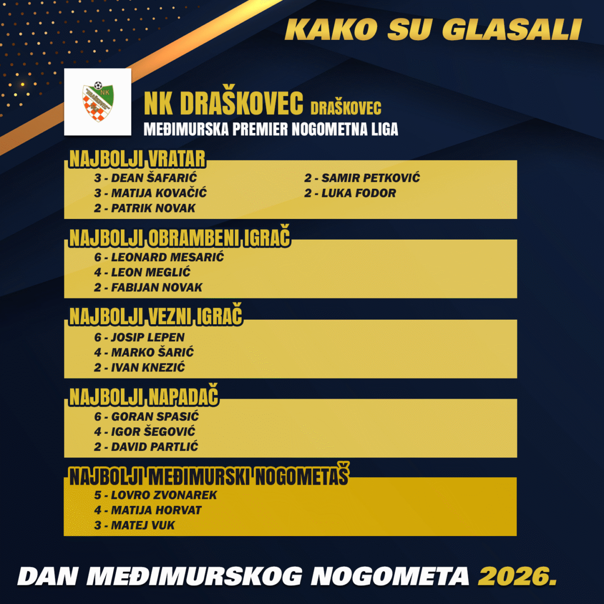 Međimurski nogometni savez po četvrti puta organizira DAN MEĐIMURSKOG NOGOMETA čija će se završna svečanost proglašenja održati 28. siječnja 2026. godine u velikoj dvorani Centra za kulturu Čakovec.
