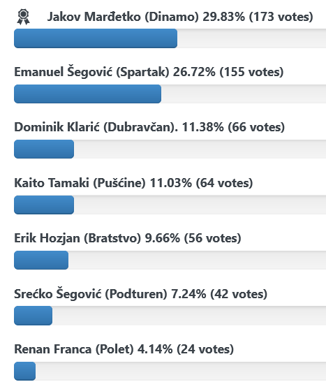 Pobjedu u 5. kolu odnio je obrambeni igrač palovskog Dinama Jakov Marđetko. Bitku za pobjedu vodio je do posljednjeg trenutka sa Spartakovim Emenuelom Šegovićem, pa njihov dvoboj možemo prikazati kao uvertira u veliki vječiti derbi.