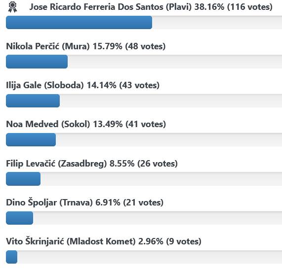 Drugo kolo zaredom vaše simpatije zaradio je nogometaš Plavih Jose Ricardo Ferreria Dos Santos. Brzonogi Brazilac zabio je pobjednički pogotak u pobjedi usred Donjeg Kraljevca.
